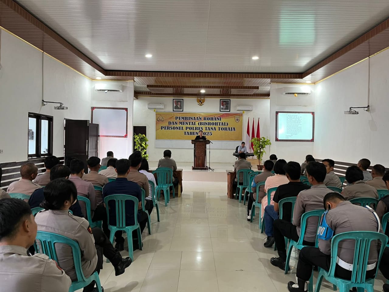 TANA TORAJA – Personel Polres Tana Toraja melaksanakan kegiatan pembinaan rohani dan mental (Binrohtal) bagi seluruh personil Polres Tana Toraja sebagai upaya membentuk karakter anggota yang beriman dan berintegritas dalam menjalankan tugas kepolisian, Kamis (23/10/25).